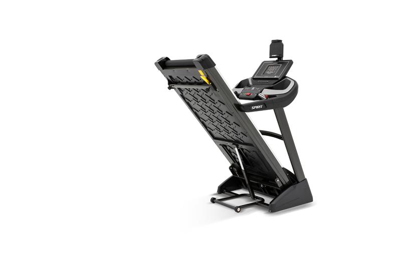 - Заголовок [Описание]: Складная конструкция [Благодаря газ-лифту и технологии безопасного складывания деки, беговую дорожку Spirit можно компактно хранить, когда она не используется]