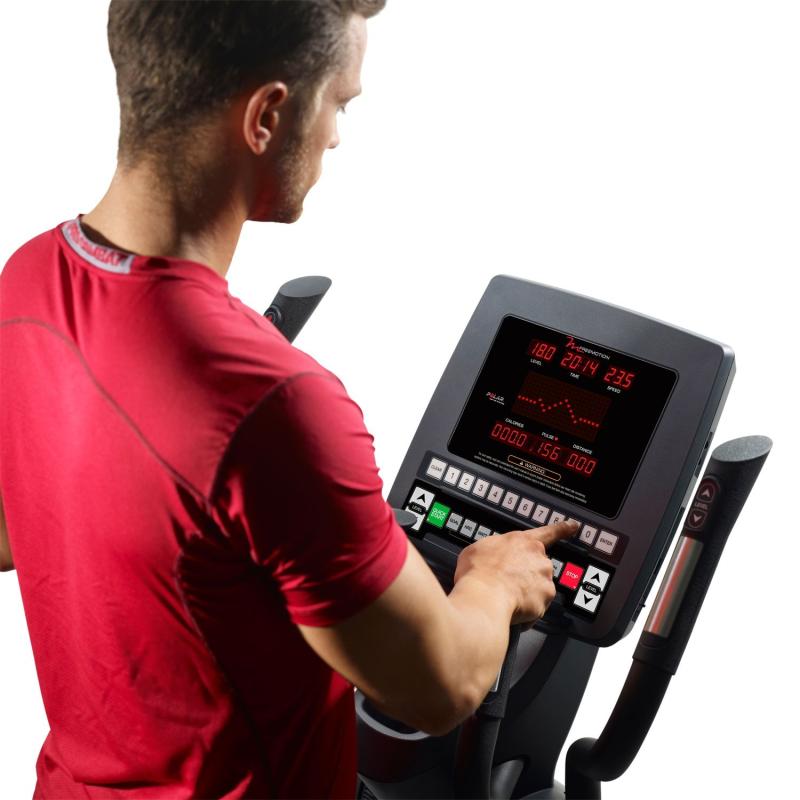 Эллиптический тренажёр оснащён легкочитаемым светодиодным дисплеем, который позволяет отслеживать параметры тренировки. На дисплее отображается следующая актуальная информация: сопротивление тренажёра, скорость, продолжительность тренировки, пройденное расстояние, частота пульса и количество сожженных калорий.