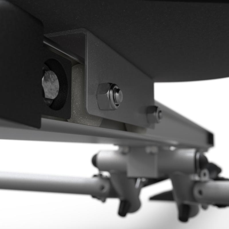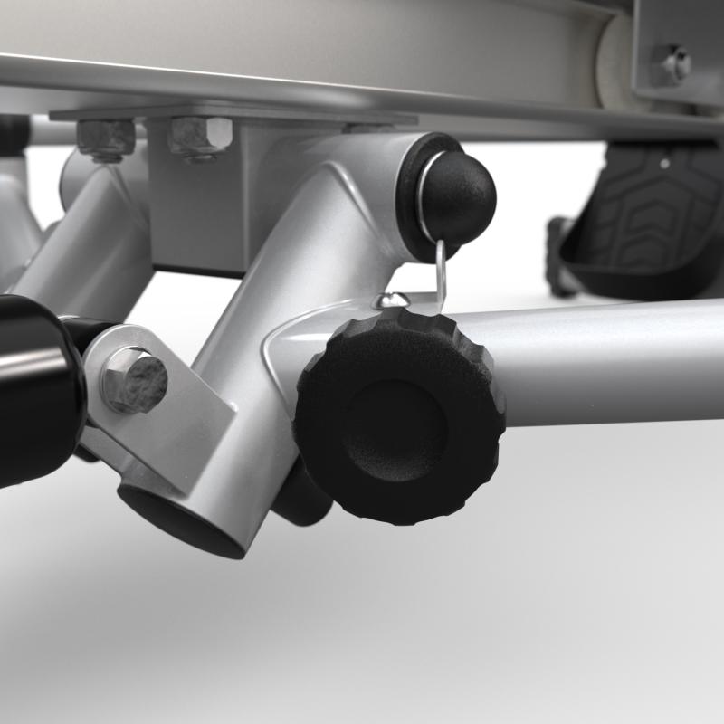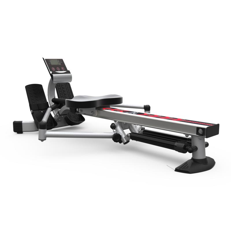 Нагрузка тренажёра создаётся при помощи 2-х гидравлических цилиндров и регулируется с помощью колесика в верхней части каждого цилиндра. Доступно 12 уровней сопротивления, рекомендовано начинать занятия с минимального значения. Дисплей работает от двух батареек типа ААА (не входят в комплект) и отображает следующие параметры: время, количество гребков общее, количество гребков за 1 тренировку и калории. На консоли расположена подставка под планшет.