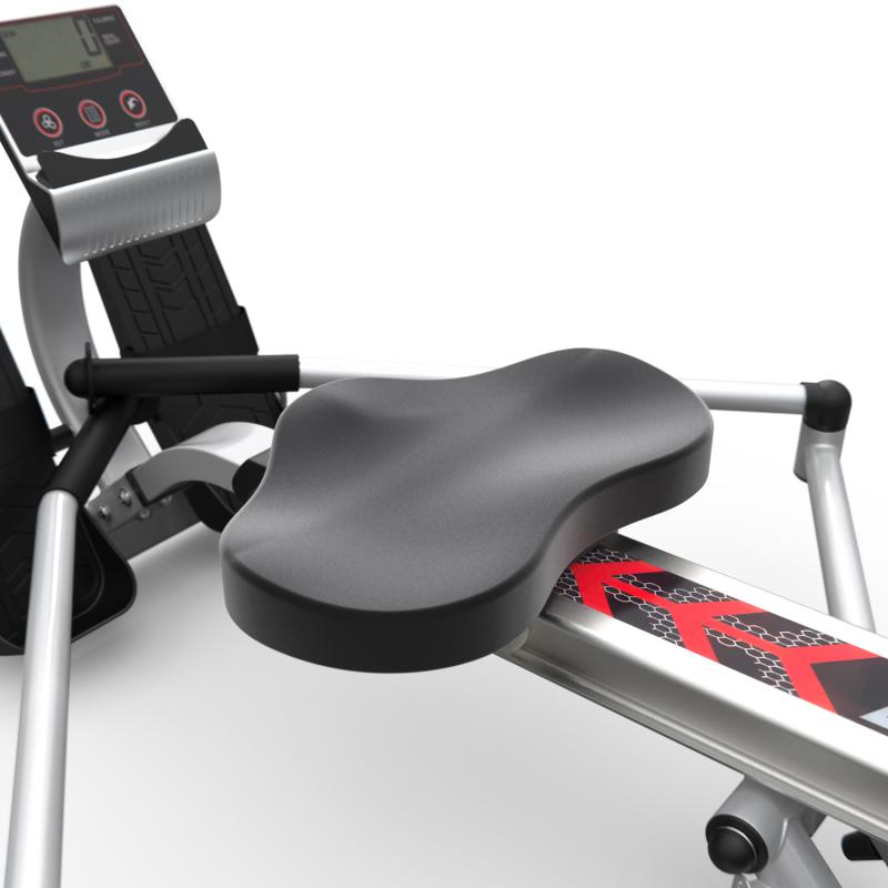Гребной тренажёр R123A складной, благодаря чему не займёт много места в комнате. Эргономичное сиденье размером 38,5 х 27 см и толщиной 4,7 см, на педалях предусмотрены регулируемые ремешки. Размер педалей - оптимальные 32,5 х 13,4 см, а высота от пола до нижней части составляет 7,6 см. Рукоятки тренажёра имеют диапазон вращения 360°. Эти особенности позволят отрегулировать тренажёр исходя из потребностей пользователя.