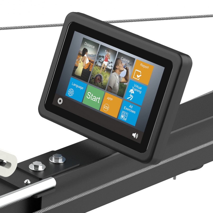 Консоль оборудована современным компьютером с 10,1-дюймовым цветным TFT-дисплеем, который отображает все необходимы показатели тренировки: время тренировки, пройденная дистанция, уровень нагрузки, расход калорий, пульс, количество гребков, количество гребков в минуту и др. Широкий спектр программ консоли позволяет проводить различные гребные тренировки - от развития силы до снижения веса. Кроме предустановленных режимов имеется возможность проведения ручной тренировки с самостоятельной регулировкой нагрузки. На стартовом экране расположено несколько плиток с выбором режимов работы - целевая на время, расстояние и калории, также целевая на темп с выбором расстояния и времени, интервальные программы (расстояние, время, калории).