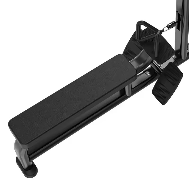 Длинное сиденье позволяет использовать тренажер людям разного роста и комплекции. Удобная рукоятка для горизонтальной тяги дает возможность выбрать подходящий хват и не выскальзывает из рук, благодаря обрезиненной поверхности. Надежный упор и фиксация тела при выполнении нижней тяги сидя обеспечена двумя подножками с текстурными резиновыми накладками, которые предотвращают соскальзывание стоп. Подставка с резиновым защитным покрытием предотвращает повреждения блочной ручки и амортизирует удар при резком окончании упражнения.