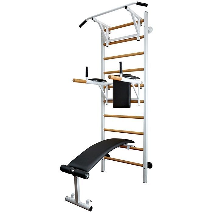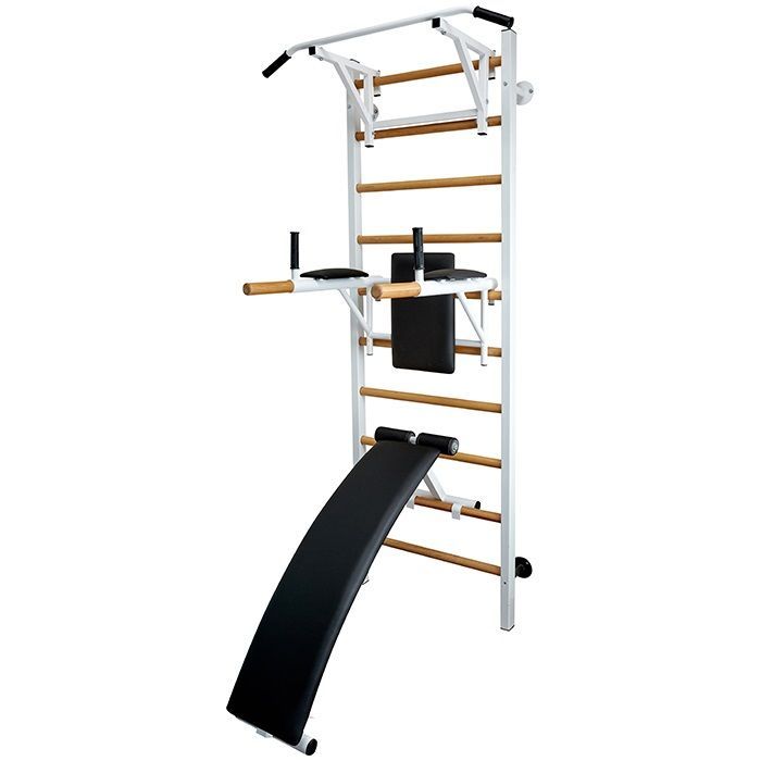 Шведская стенка RS-G12.23.34 (White) отличное приобретение как для дома. Так и спортзала. В этом оборудовании идеально сочетается все: прочность за счет использования металлических стоек и деревянных перекладин из бука, надежность, за счет монтажа изделия к стене, безопасность, достигнутая использованием заглушек и фиксации перекладин саморезами к стойкам. Шведская стенка RS-G12.23.34 (White) оснащена съемным турником, скамьей для пресса с откидной ножкой и брусьями с поручнями из бука, которые идеально сочетаются со стильным и современным дизайном всего тренажера.