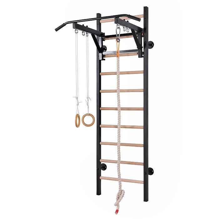 Прочная и устойчивая шведская стенка RS-GB13 (+канат, кольца) станет любимым местом для ежедневных тренировок взрослых и детей. Конструкция изделия отличается повышенной прочностью, которая достигается за счет использования металлического профиля и износоустойчивых буковых перекладин. Все перекладины фиксируются к стойкам с помощью саморезов, что исключает их прокручивание во время тренировок. Шведская стенка RS-GB13 оснащена навесным турником, канатом и гимнастическими кольцами ― оптимальный набор снаряжений, который понравится детям. Использование такого тренажера обеспечит оптимальные условия для формирования правильной осанки у подростков, а также развития различных мышц тела.