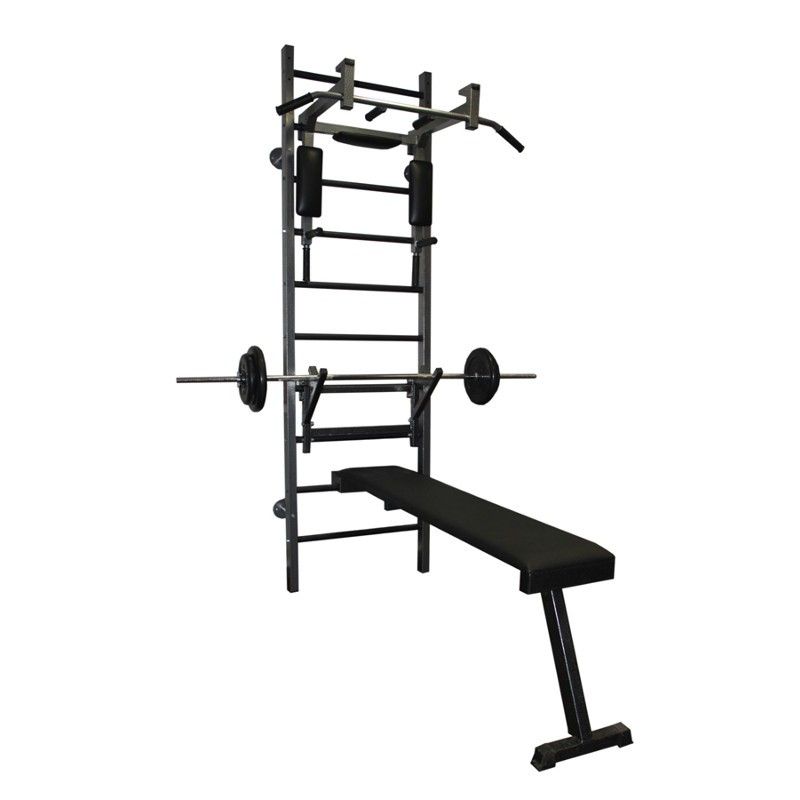 Комплектация: Шведская стенка + турник-брусья-пресс, скамья для жима, упоры для штанги
