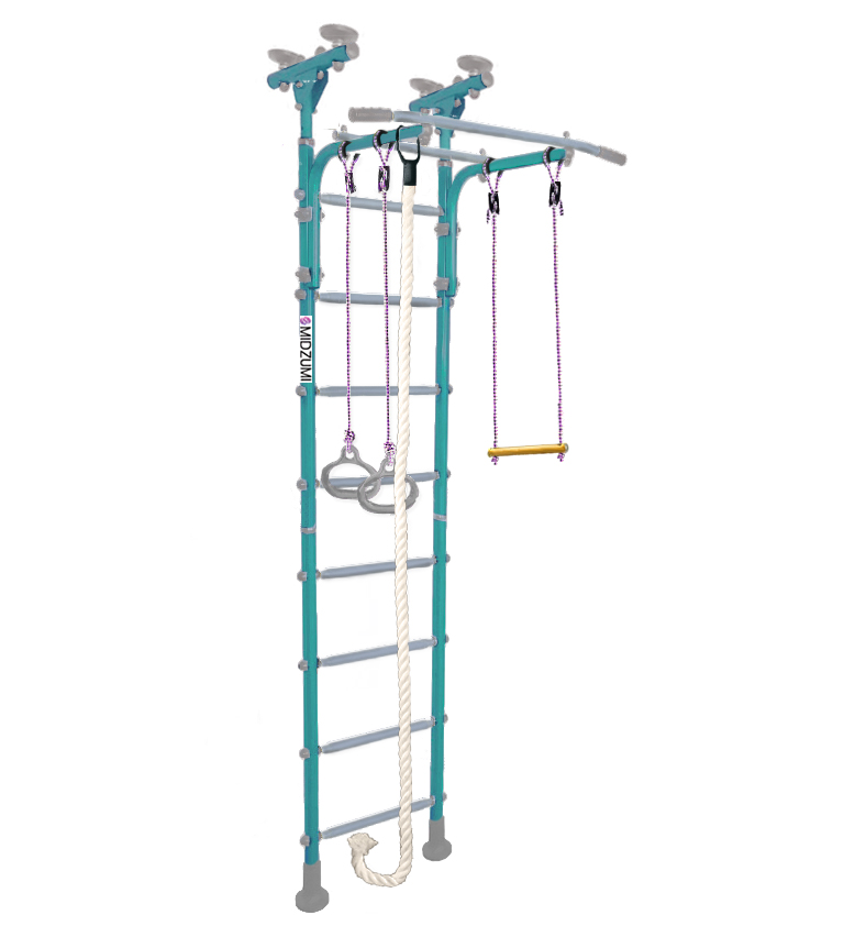 Комплектация: основа - металлическая шведская стенка с турником, гимнастические кольца, канат, трапеция.