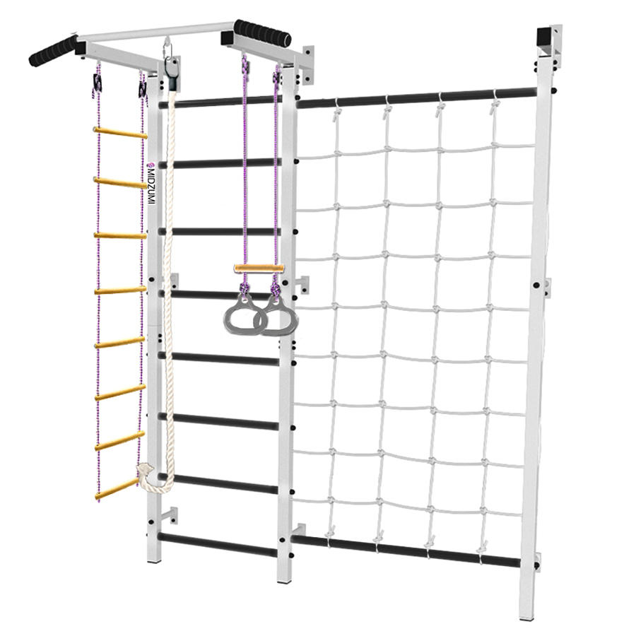 Настоящая находка для семьи! Позволяет одновременно заниматься двум или даже трем детям одновременно. Универсальный цвет отлично впишется в любой интерьер. Модель оборудована аксессуарами для развития разных групп мышц, мелкой моторики, ловкости, координации движений и прочего. Предусмотрены крепления для дополнительных снарядов и аксессуаров, которые будут по душе в зависимости от возраста (TRX, боксерская груша и прочее). Прочная металлическая конструкция позволяет выдерживать до 120 кг.