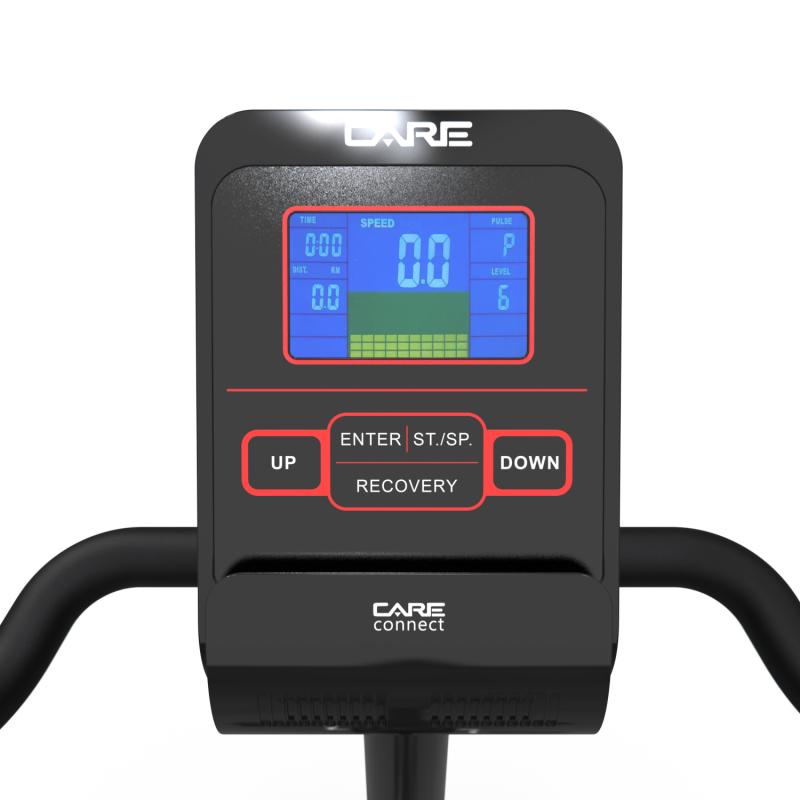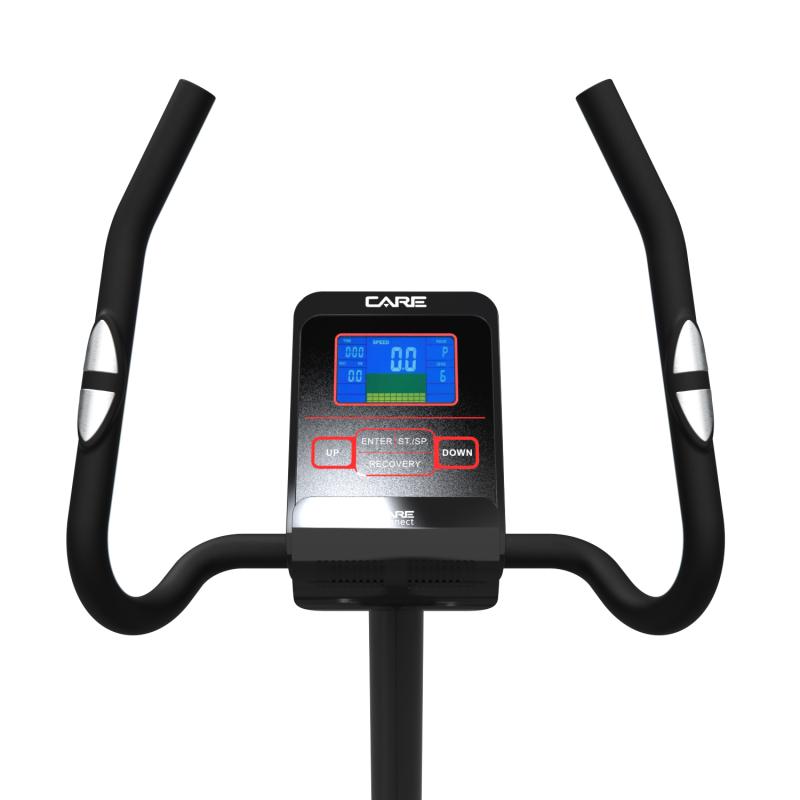 Дисплей велотренажера с синей подсветкой отображает множество параметров, включая профили пользовательских настроек, предустановленные программы тренировок, контроль мощности, контроль пульса, восстановление пульса, обороты в минуту, время, скорость, расстояние, количество сожженных калорий и ватты. На выбор пользователя представлена 21 программа тренировки, а также функция Bluetooth. С помощью Bluetooth пользователю доступно подключение к собственному гаджету и отслеживание тренировок через спортивное приложение, к примеру, FitShow.
