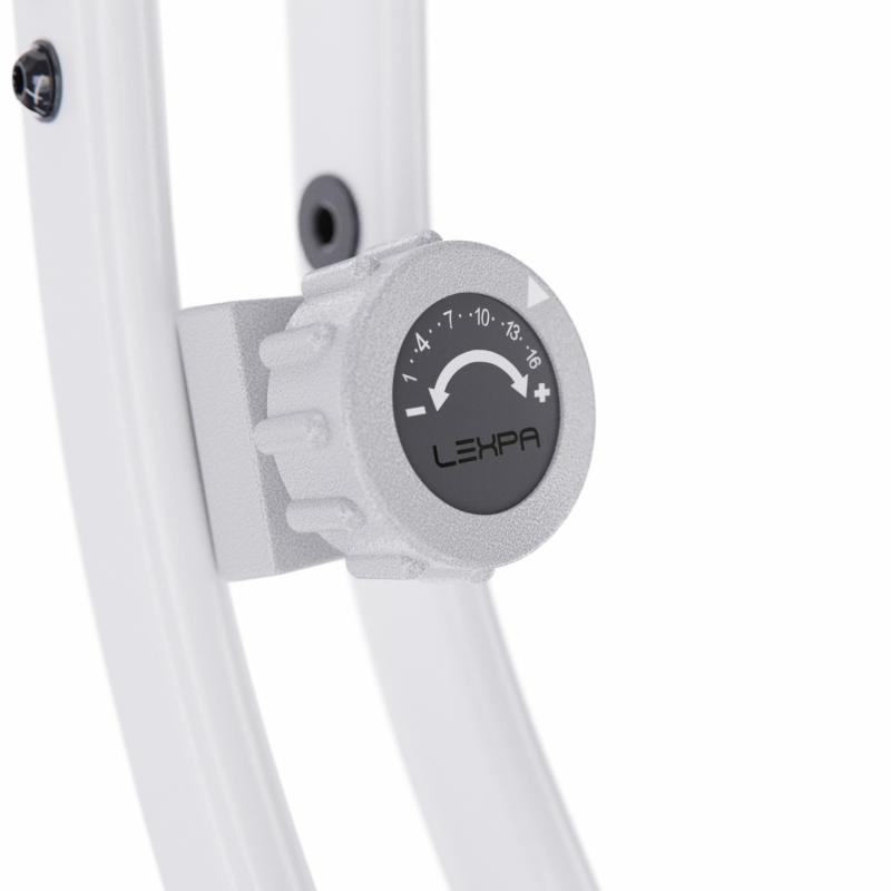 X-Bike LEXPA имеет компактные размеры в сложенном виде — 23 x 40 x 117 сантиметров, что позволяет легко хранить его даже в небольшом помещении. Транспортировочные ролики и компенсаторы неровности пола обеспечивают стабильность и безопасность во время занятий.