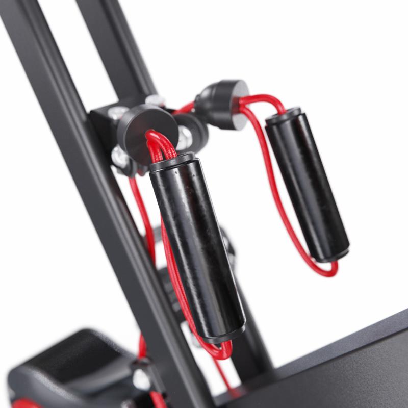 Благодаря складной конструкции тренажер легко хранить даже в небольших помещениях. В сложенном виде его габариты составляют 48 × 58 × 133 см. Встроенные транспортировочные ролики позволяют без усилий перемещать его по комнате, а компенсаторы неровностей пола обеспечивают устойчивость на любой поверхности.