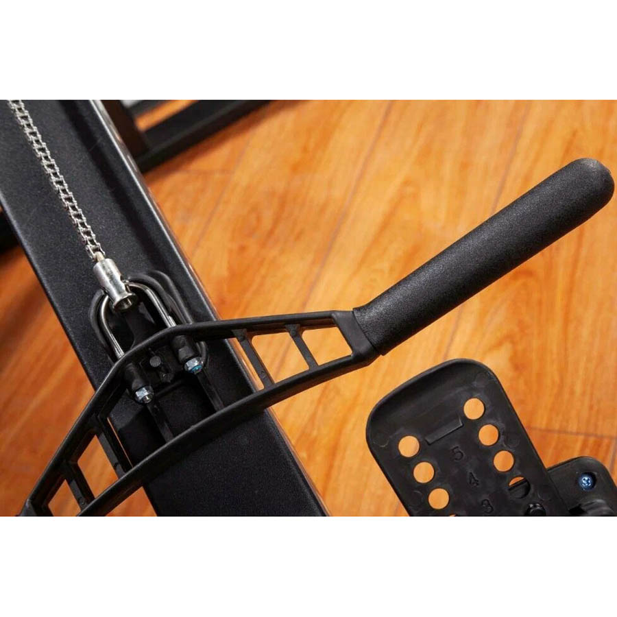 Упоры для ног настраиваются под полноту и размер стопы с помощью нейлонового ремешка со стальным фиксатором и регулируемого задника для пятки - 5 позиций. Комфортную тренировку на гребном тренажере обеспечивает дышащее сиденье с контурами под тело спортсмена, выполненное из прочного ППУ. Плавное и надежное движение обеспечено четырьмя роликами из полиуретана, которые свободно передвигаются по направляющей из нержавеющего алюминиевого сплава.